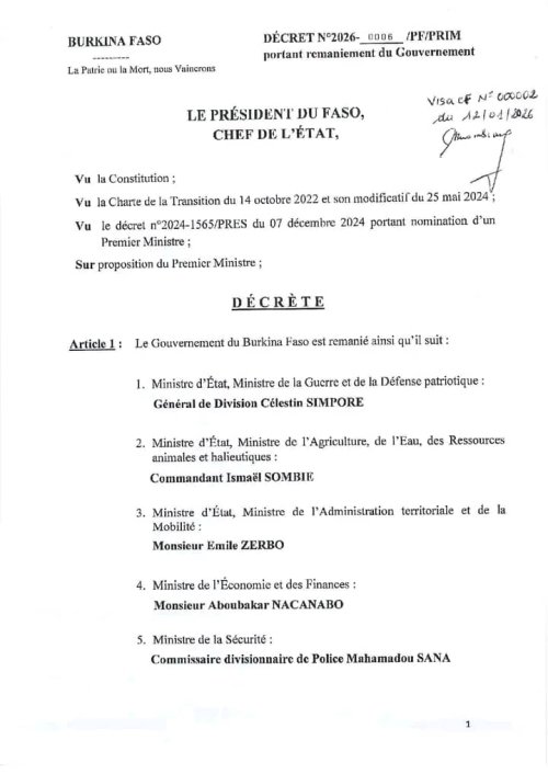 Le président Burkinabè, le capitaine Ibrahim Traoré, a procédé tard, dans la soirée du lundi 12 janvier 2026, au remaniement de son gouvernement. Si le Premier ministre Rimtalba Jean Emmanuel Ouédraogo conserve son portefeuille dans la nouvelle équipe, certaines têtes du gouvernement ont été changées à des postes clés.