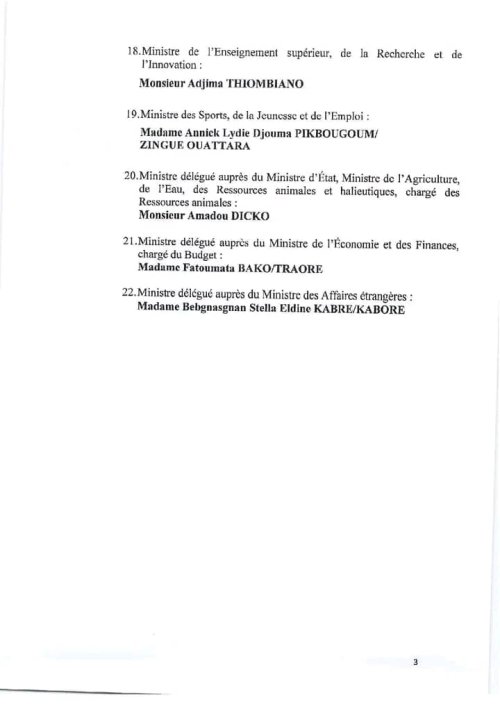Ci-dessous, le nouveau gouvernement du Burkina Faso :