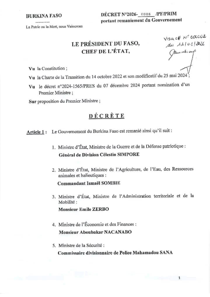 Le président Burkinabè, le capitaine Ibrahim Traoré, a procédé tard, dans la soirée du lundi 12 janvier 2026, au remaniement de son gouvernement. Si le Premier ministre Rimtalba Jean Emmanuel Ouédraogo conserve son portefeuille dans la nouvelle équipe, certaines têtes du gouvernement ont été changées à des postes clés.