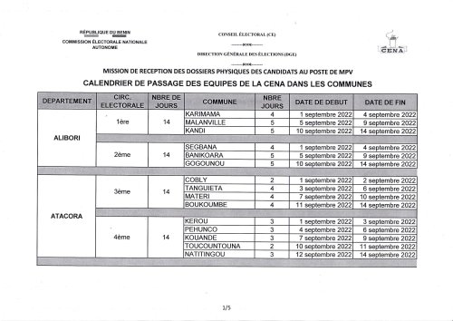Dan le cadre des élections législatives de janvier prochain, la Commission Electorale Nationale Autonome (CENA) a fait publier un calebndrier qui renseigne sur le passage de ses équipes dans les communes pour réceptionner physiquement les dossiers des candidats aux postes de membres de postes de vote (MVP).