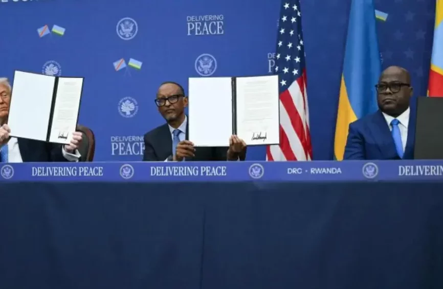 Les accords signés jeudi 04 décembre par les présidents Félix Tshisekedi et Paul Kagamé en présence de Donald Trump et de plusieurs autres chefs d’Etat, à la Maison Blanche, comportent la cessation des hostilités, avec l’instauration d’un cessez-le-feu, un programme de désarmement, un processus de retour des personnes déplacées et des mesures de « justice » contre les responsables d’exactions.